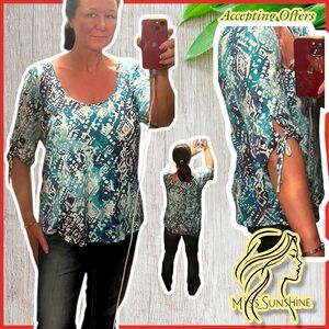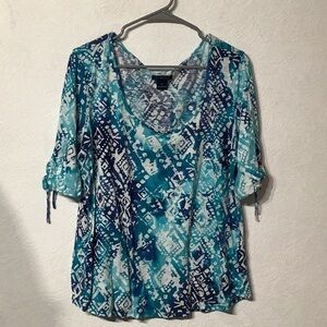 Lucky Brand - Sz XL - Abstract aquamarine turquoise Blue and White Tee