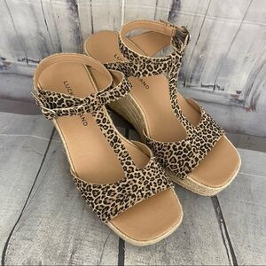 Lucky Brand T-Strap Espadrille Platform Sandals Suede Upper Animal Size 9.5M