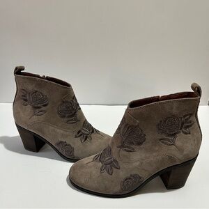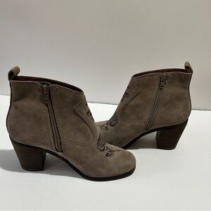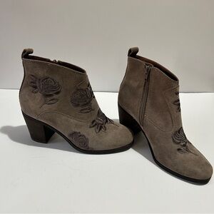 Lucky Brand Tan Ankle Booties with Floral Embroidery