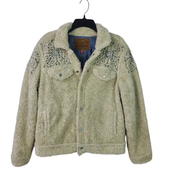 Lucky Brand Tan Cream Blue Sherpa Tomboy Trucker Jacket Coat XL
