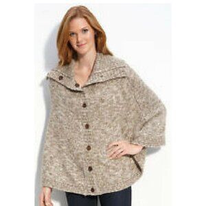Lucky Brand Tan Knit Mohair Wool Blend Poncho Cape NWOT