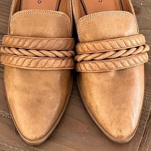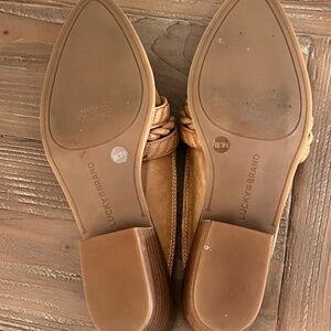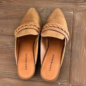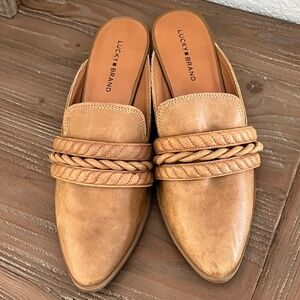 Stylish tan mules with braided detail. Comfortable block heel. Perfect for casual wear.