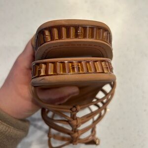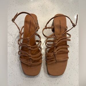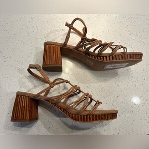 Stylish strappy design. Comfortable block heel. Adjustable ankle strap.