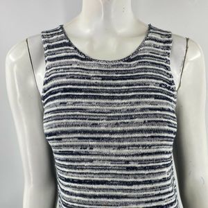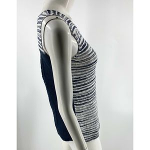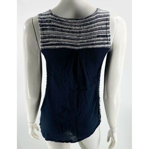 Lucky Brand Tank Top Sz XS Navy Blue White Striped Mixed Media Crepe Back Womens