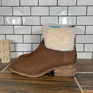 Lucky Brand Tarina Womens 10 Shoes Cedar Woodland Leather Shearling Ankle Boot