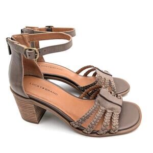 Lucky Brand Tasmina Women's Leather Ankle Strap Heels Brown Size US9M EU40