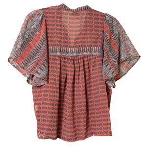Lucky Brand Tassel Tie Short Flare Sleeve Peasant Blouse Women's Size Small