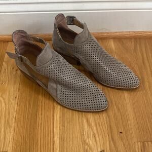 Lucky Brand Taupe Gray Laser Cut Fillian Bootie Size 9 Minimalist Basic