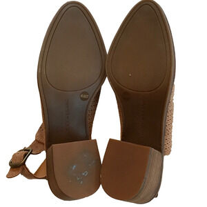 Lucky Brand Taupe Leather Slip On Block Heel Buckle Closer size 6.5