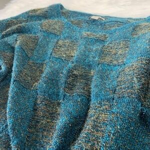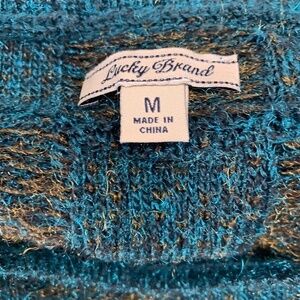 Women's Lucky Brand Sweater. Pullover. Blue teal and gold metallic.
