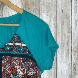 Stylish teal top with a vibrant paisley pattern. Perfect for casual outings.