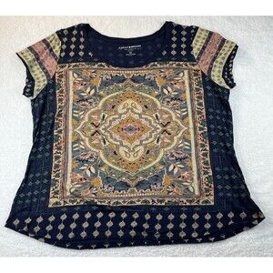 Lucky Brand Tee Womens Plus 1X Persian Carpet Top Scoop S/S Bohemian Lagenlook