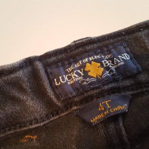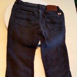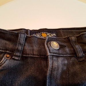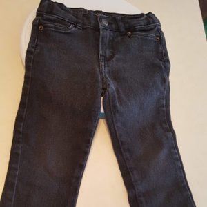 Lucky the toddler that gets these cute little jeans! Distressed with fading a stress areas and some brushing of lap area & shins, giving the fabric almost a flannel feeling in "worn" softness. Real front pockets. Charcoal black w/medium wash. Backside seam-tag is pink & fit IS skinny, SO if you're conscientious about that, these might tend to be for girls. Plenty of wear left in these gems. So low-priced, bundle to save on shipping, and I always offer deals on more than one item. SFPF home.