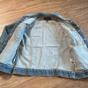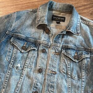 Lucky Brand Tomboy Trucker Jacket Womens XS Denim Jacket Blue Distressed fitted