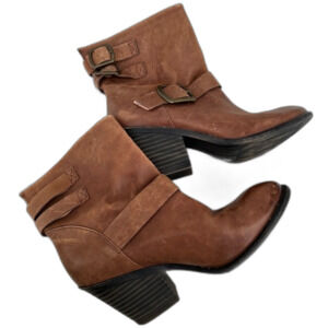 Lucky Brand LP "Tommie" style leather buckle distressed slip-on ankle boot booties size 10.