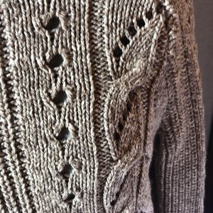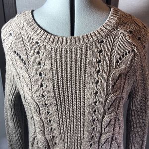 Lucky Brand Tomorrow taupe marled cable knit sweater short fitted