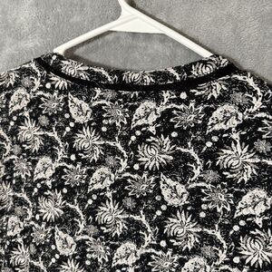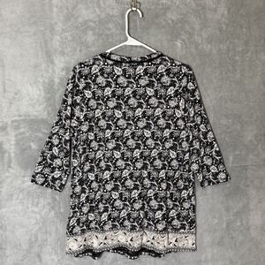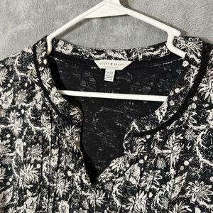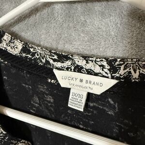 Lucky Brand Top 1X Boho V Neck Plus 3/4 Sleeve Black Floral Bohemian Flowy Tunic