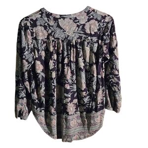 Lucky Brand Top Black Floral Long Sleeve V-Neck Hi-Lo Hem Blouse Women Size SP