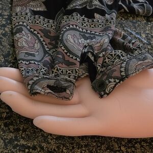 Lucky Brand Black Floral Boho Chic Blouse – Size Small Petite (SP)