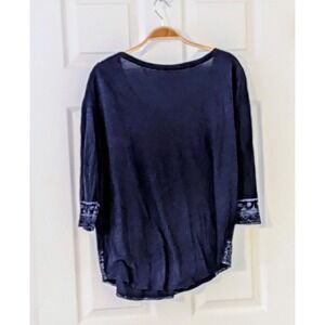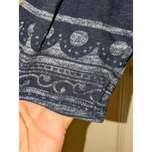 Lucky Brand Top Large Blue Silver Print Scoop Neck 3/4 Sleeve Blouse