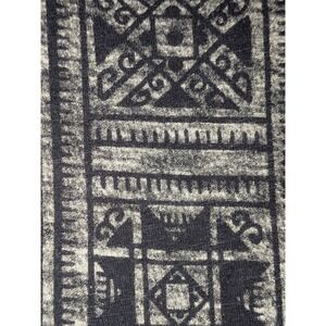 Stylish Lucky Brand top featuring an intricate tribal inspired print. This black top boasts a flattering scoop neckline and comfortable 3/4 sleeves, perfect for everyday wear. The geometric, silver-tone pattern adorns the front panel, neckline, and sleeve cuffs, adding a touch of bohemian flair. Ideal for casual outings, relaxed weekends, or even a smart-casual office setting.