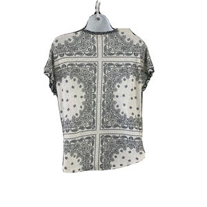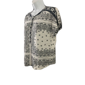 Lucky Brand Top Linen Blend Tunic Sz M White/Blue Paisley Peasant 1/4 Button up