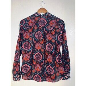 Add a touch of luck to your wardrobe with this stylish Lucky Brand top for women. The black, blue, and red floral pattern makes it perfect for any casual occasion, while the collared neckline and button closure add a touch of sophistication. The long sleeves and slim fit make it a versatile piece for any season, whether you're going for a western, rodeo, or bohemian theme. Made of high-quality cotton, this top is both comfortable and durable. Available in size small, it's the perfect addition to any fashion-forward woman's collection.