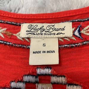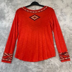 Lucky Brand Top Orange Southwestern Embroidered Arrow Aztec Peasant Shirt