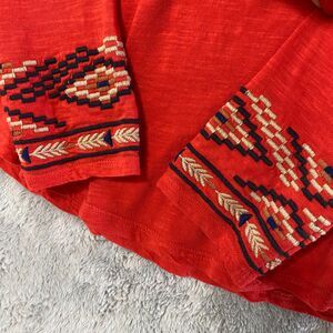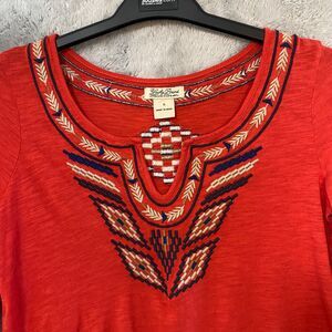 Lucky Brand Top Orange Southwestern Embroidered Arrow Aztec Peasant Shirt SP