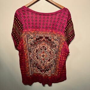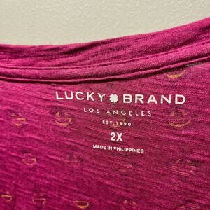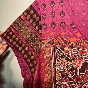 Lucky Brand Top Tunic Fuchsia Pink Knit Boho Artsy Scoop Neck Comfy Casual 2X