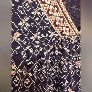 Lucky Brand Top Tunic Printed V-Neck Bell Sleeve Purple Boho Blouse Size Small. Cotton/modal blend. Great condition