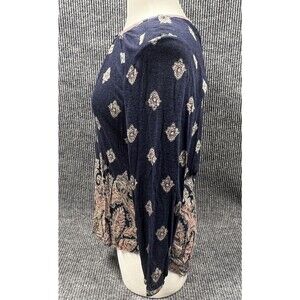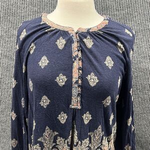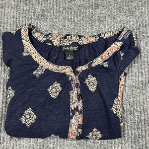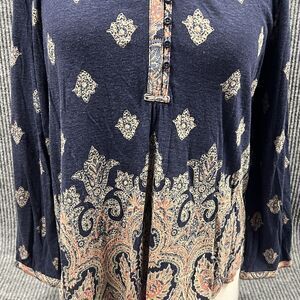 Lucky Brand Top Women Large Navy Blue Persian Carpet Print Boho Blouse Shirt