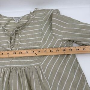 Lucky Brand Top Women Medium Green Beige Long Sleeve Stripes Tie Front Keyhole