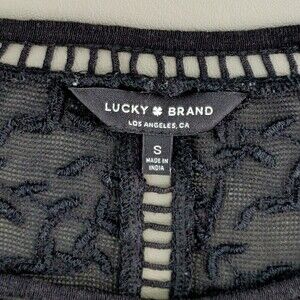 Lucky Brand Top Women Small Black Peasant Lace Crochet Linen-Modal Blouse Flowy