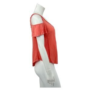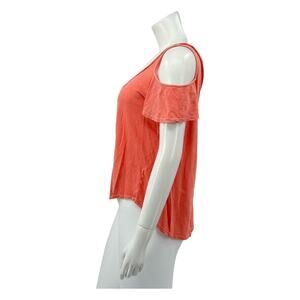 Lucky Brand Top Women Small Cold Shoulder Orange Cotton Modal Beachy Summer Boho