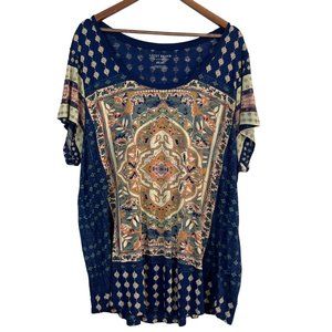Lucky Brand Top Womens 3X Navy Blue Floral Pattern Knit Short Sleeve Tee Shirt