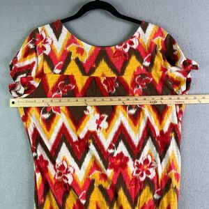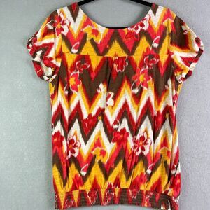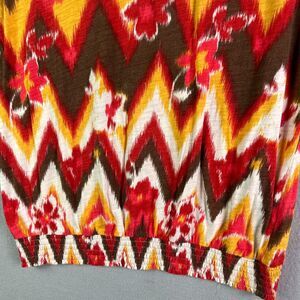 Lucky Brand Top Womens L Pullover Red Yellow Floral Metal Buttons Elastic Hem