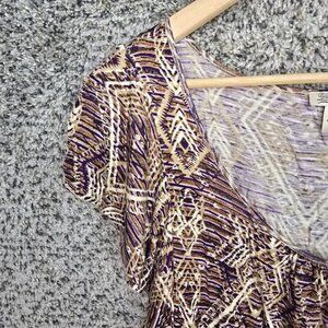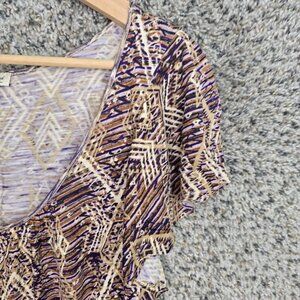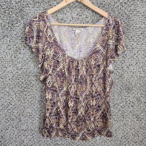 Lucky Brand Top Womens Large Purple V Neck Flutter Sleeve Boho Tee Casual Rayon