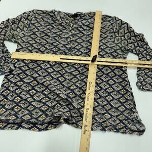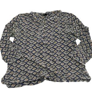 Lucky Brand Top Womens Medium Blue Gold Geo Print Boho Blouse