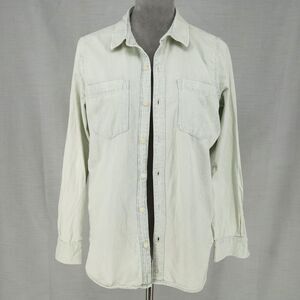 Lucky Brand Top Womens Small Ivory Blue Stripe Cotton Shirt Shacket Weathered
