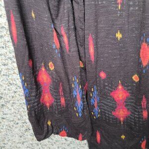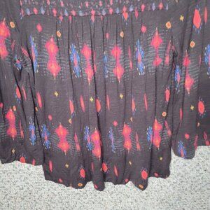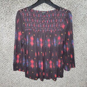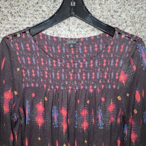 Lucky Brand Top Womens Small Red Boho Button Accent Printed Tee Casual