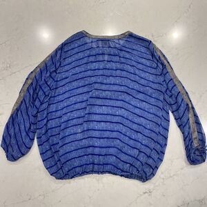 Lucky Brand Top Womens Sz 2X Sheer Boho Peasant Balloon Sleeves Blue Silver