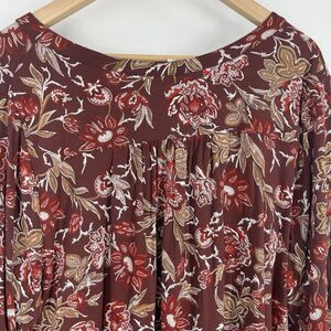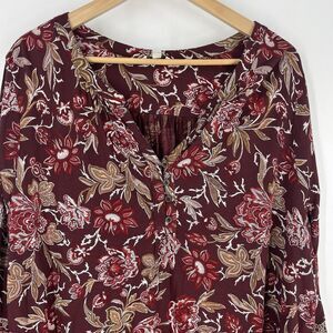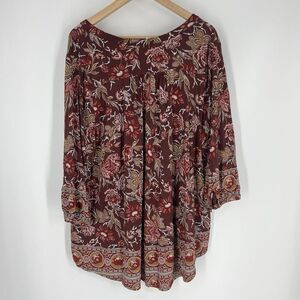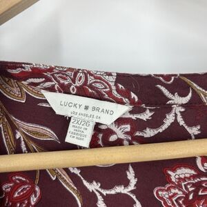 Lucky Brand Top Size 2X Womens Red Floral Print Blouse Boho V Neck Border Shirt