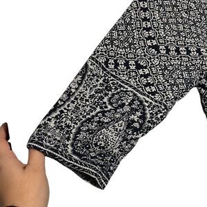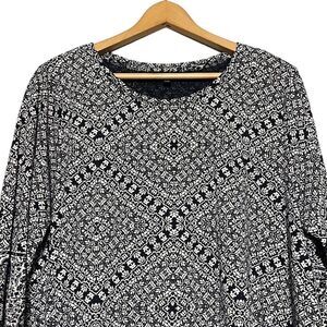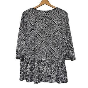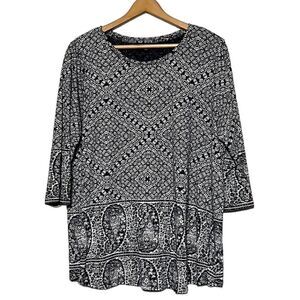 Lucky Brand Top Woman's 2X Navy White Paisley Patterned 3/4 Sleeve Cotton Modal