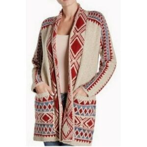 Lucky Brand Tribal Knit Long Line Cardigan Sweater w/ Pockets