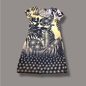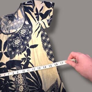 Lucky Brand Tropical Print Navy Cream T-Shirt Dress Size S