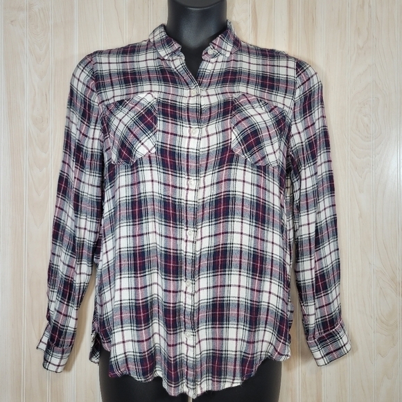 Lucky Brand Tunic Length Plaid Button-Down Shirt Sz Lg