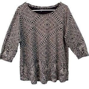 Lucky Brand Tunic Paisley Tee Cotton Modal Curved Hem Round Neck 3/4 Sleeve - 1X