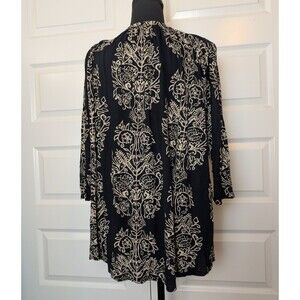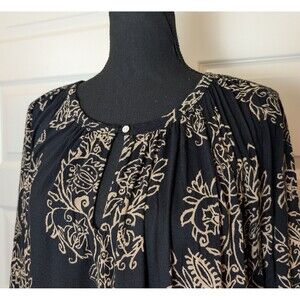 Lucky Brand Tunic Plus Size 1X Black Blouse Top 3/4 Sleeve Boho Flowy
