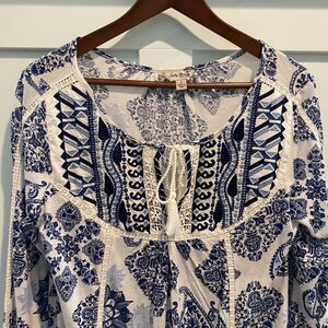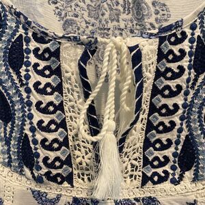 Lucky Brand Tunic Small Blue Festival Western Boho Prairie Embroidered Lace